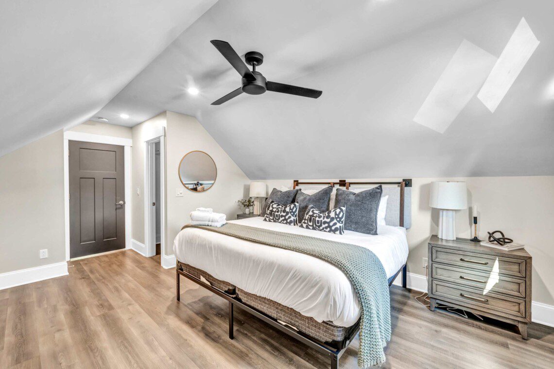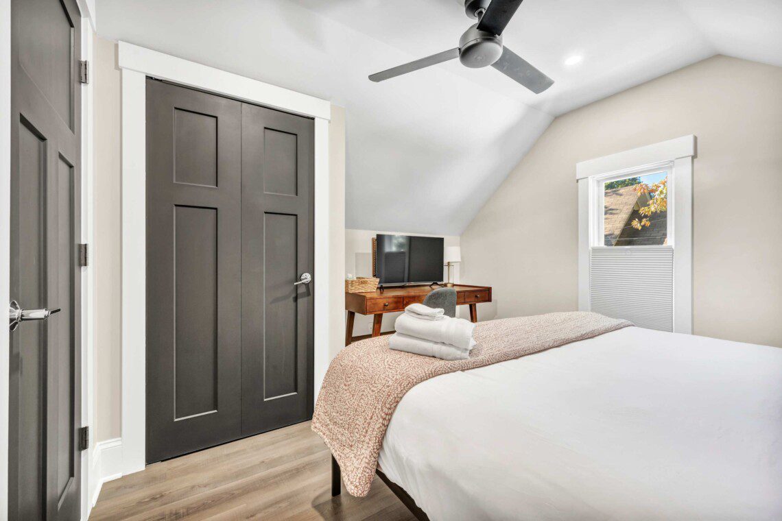 The second floor includes 2 bedrooms with Casper mattresses and a glamorous bathroom. It also boasts a workstation that is perfect for studying and work-related tasks.