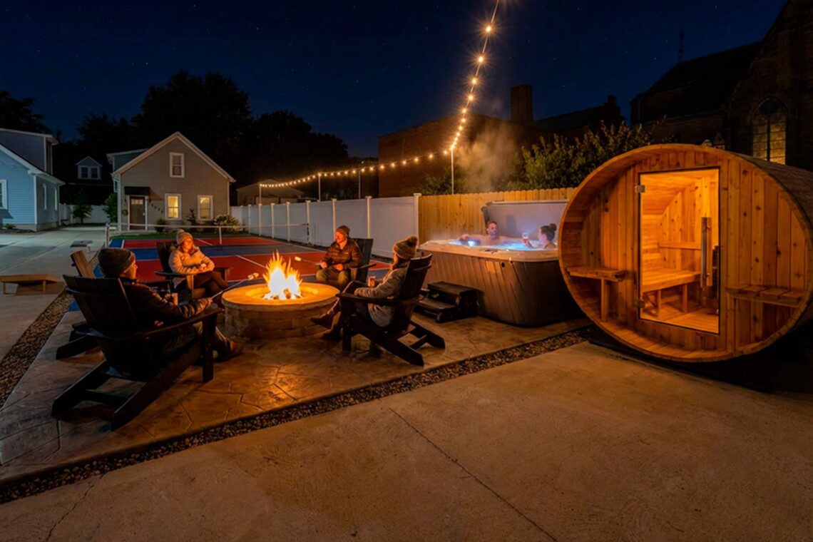 🌿 Experience a stay filled with relaxation and recreation. Guests have access to shared amenities — including cornhole, a pickleball court, hot tub, barrel sauna, and fire pit — all set within beautifully maintained outdoor spaces. These amenities are shared among the five houses on the property, creating a vibrant yet relaxing retreat designed for comfort and connection. ✨
